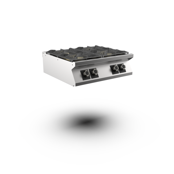 Θερμαινόμενη επιτραπέζια μονάδα αερίου με 2 μαντεμένιους καυστήρες, 1 x 3,5 kW και 1 x 6 kW. Βαλβίδα αερίου με βαλβίδα ασφαλείας.