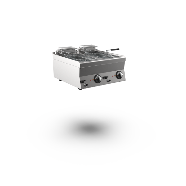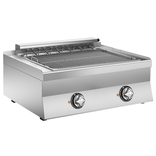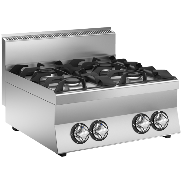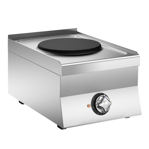 Ανοξείδωτη ηλεκτρική εστία. Με 2 ηλεκτρικές πλάκες Ø 220 mm ισχύος 2,6 kW και 2 ηλεκτρικές πλάκες Ø 180 mm ισχύος 1,5 kW. Οι πλάκες είναι στεγανοποιημένες μετά την τοποθέτηση και φέρουν χείλος κατά των υπερχειλίσεων.